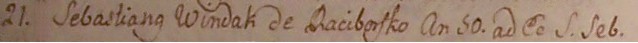 Sebastian lat 50 z Raciborska zm. 21 VII 1772, pochowany na cmentarzu przy kościele Św. Sebastiana.
