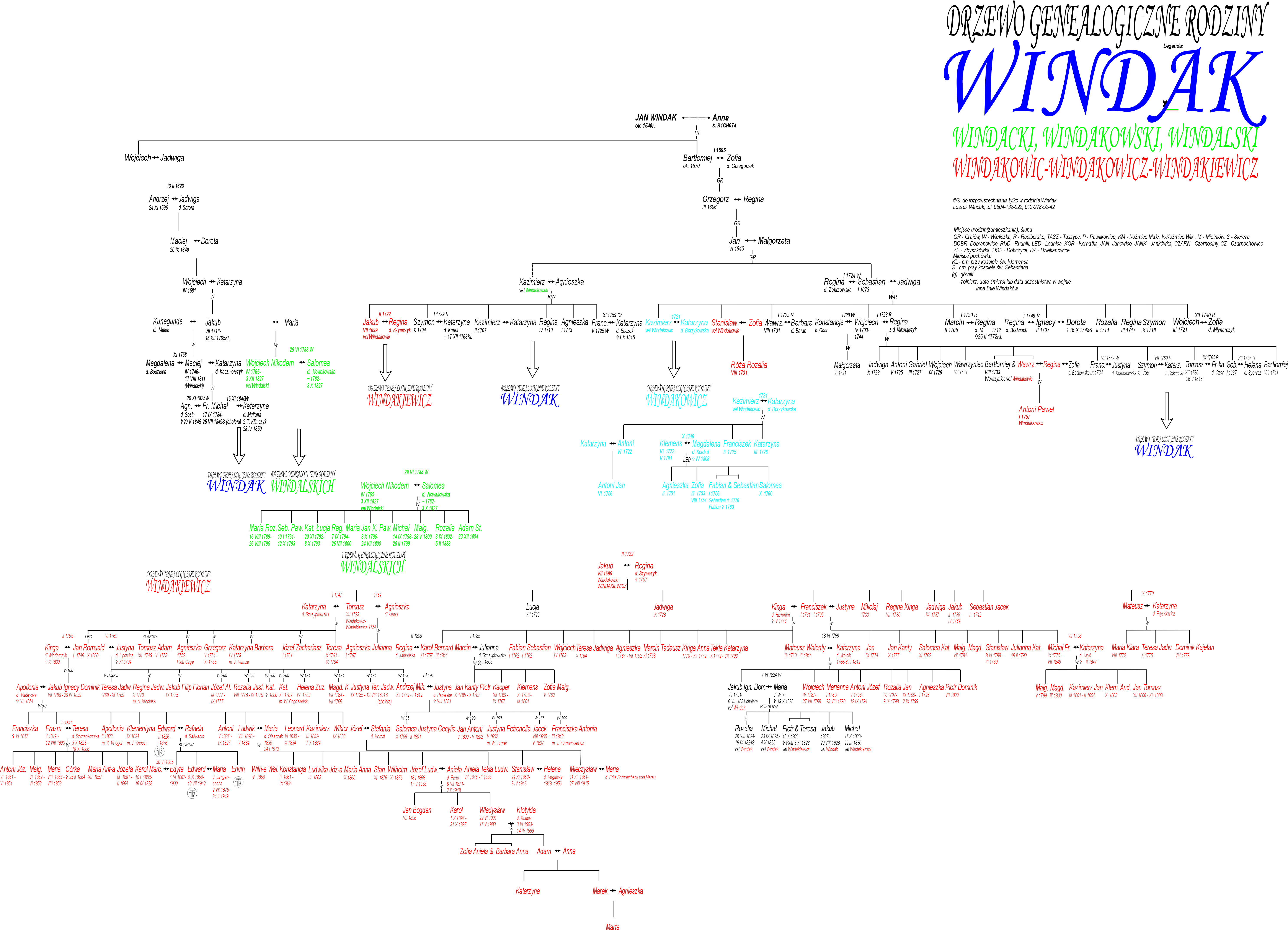 Diagram rodzin: Windakiewiczów, Windakowiczów i Windalskich.