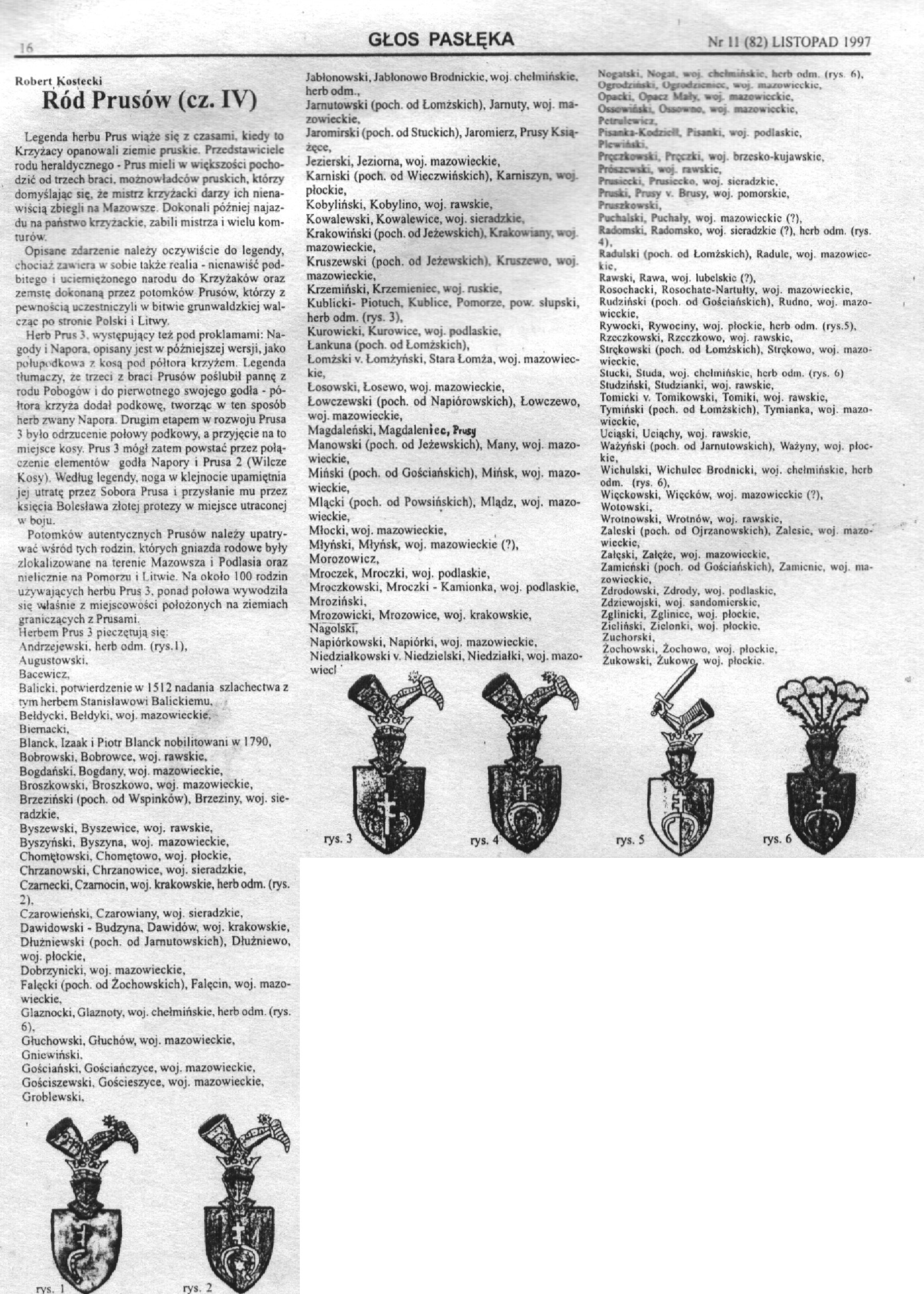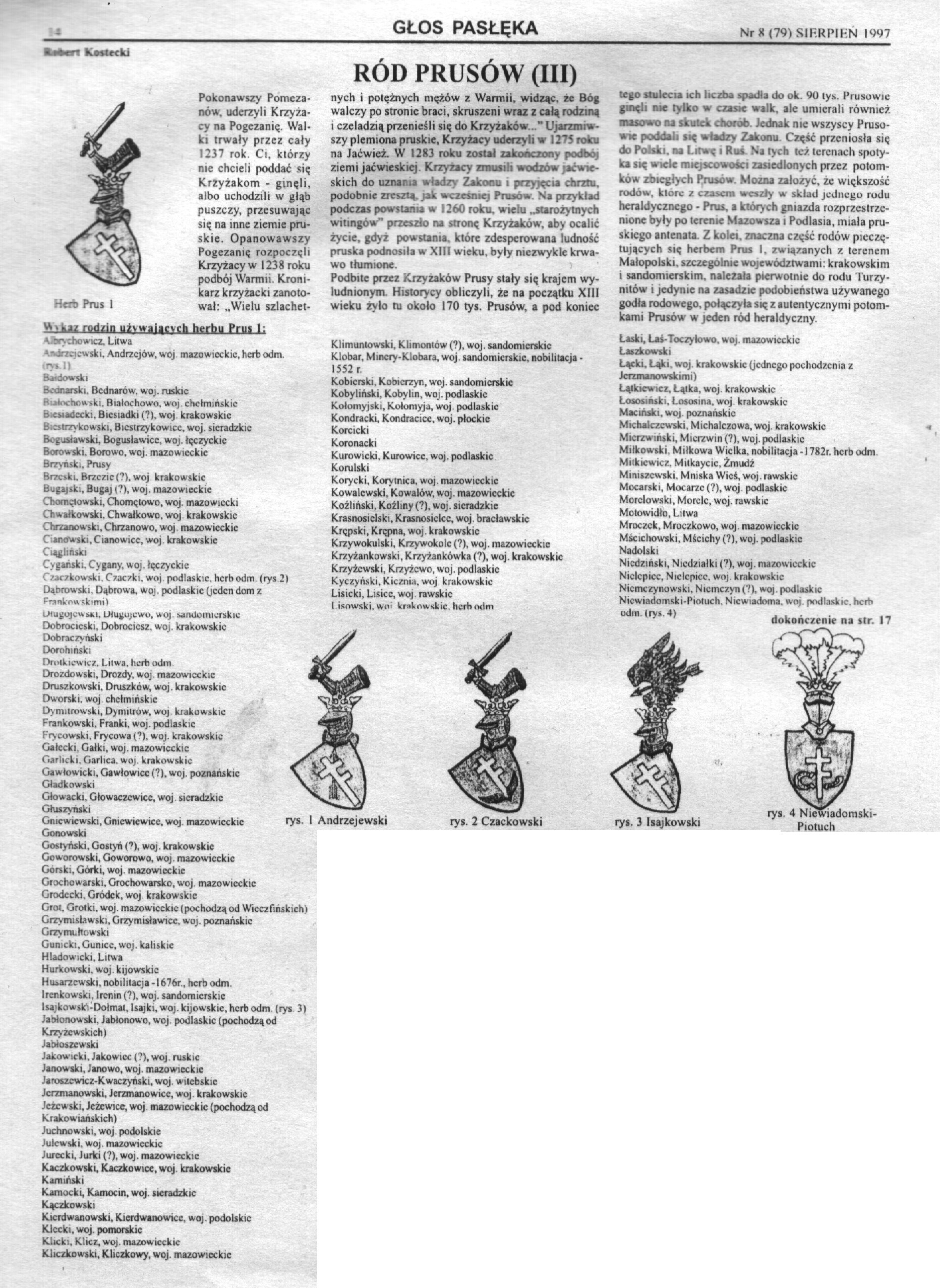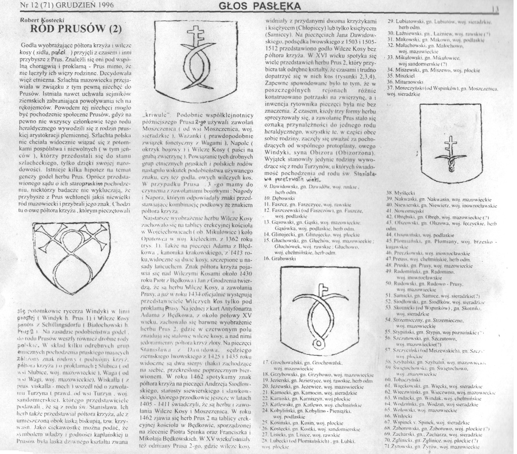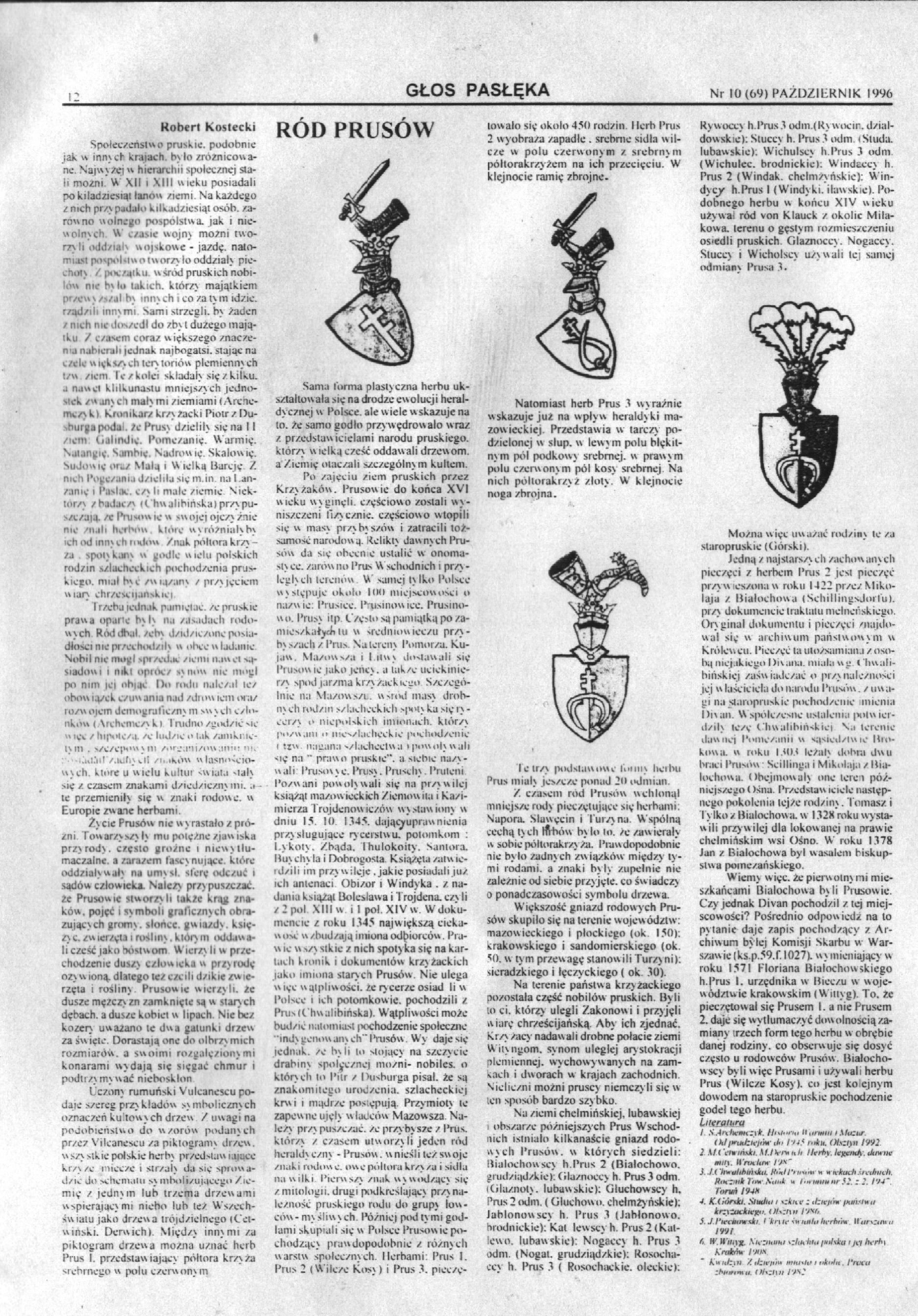 [2] Kostecki Robert, Ród Prusów , Głos Pasłęka 1996-1997